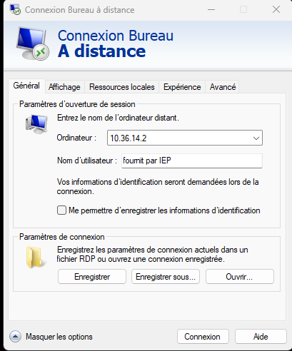 Procédure pour paramétrer le RDP¶
